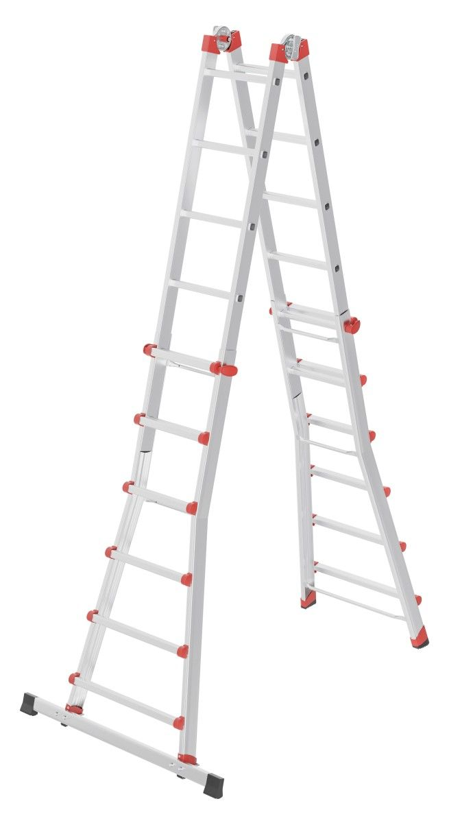 - ✔ Használható támasztólétraként, hosszabbító létraként, kétoldalas fellépőlétraként és lépcsőlétraként