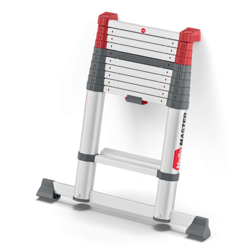 A teleszkópos kialakításnak köszönhetően a létra magassága a tényleges feladathoz igazítható, így nem kell feleslegesen magasra mászni, ami növeli a biztonságérzetet. A széles, bordázott fokok stabil állást biztosítanak, csökkentve a megcsúszás kockázatát. A gumírozott fali ütközők kímélik a falakat, ajtókereteket, homlokzatokat, miközben a biztonsági kereszttartó széles alátámasztást nyújt, és minimalizálja az oldalirányú billegést.