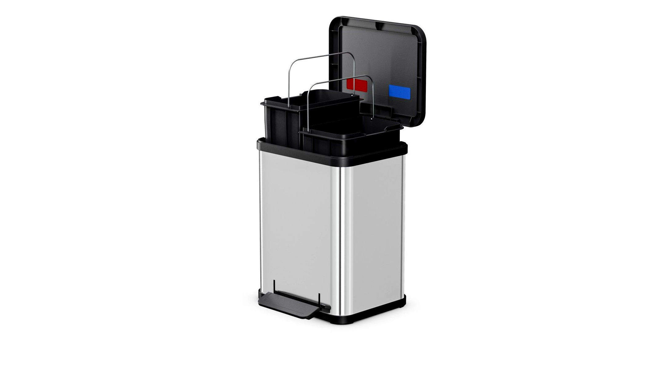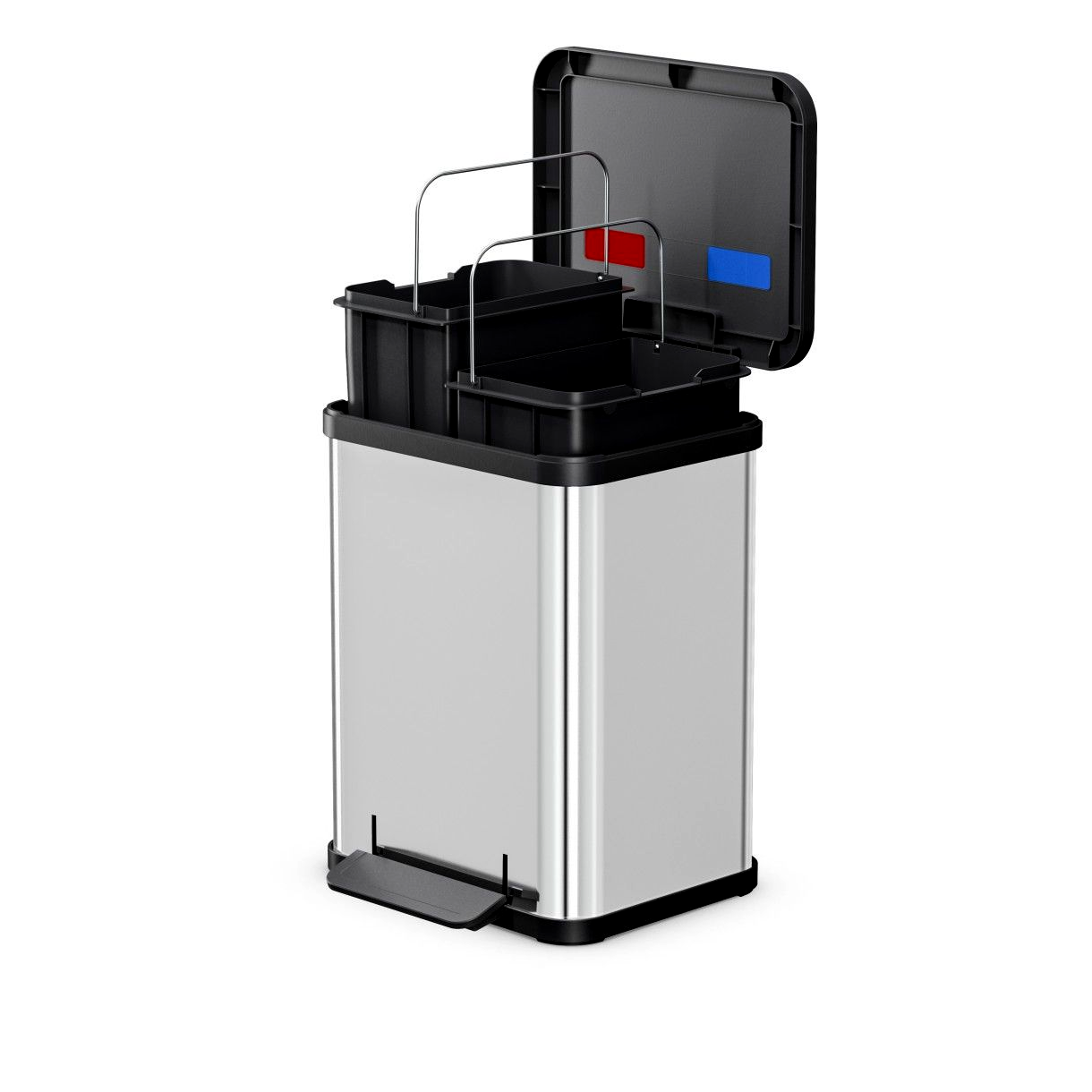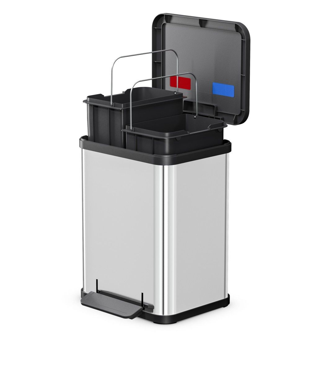 A 2 darab, egyenként 9 literes, 100%-ban újrahasznosított műanyagból készült belső vödörrel a papír, műanyag, kommunális vagy biohulladék egyszerűen szétválasztható. A tartályok kivehetők, így a kiürítés és tisztítás rendkívül gyors és praktikus.