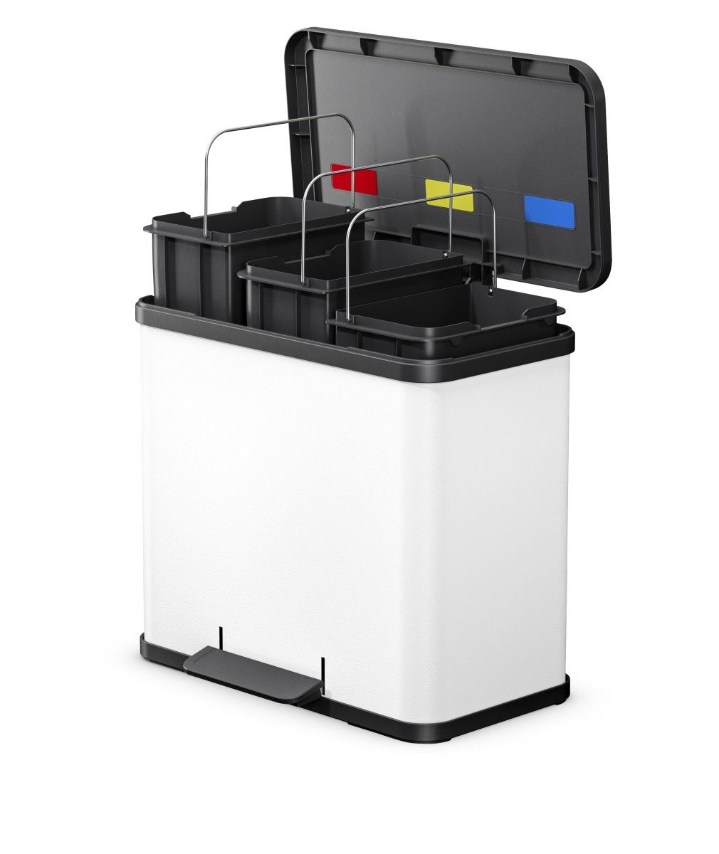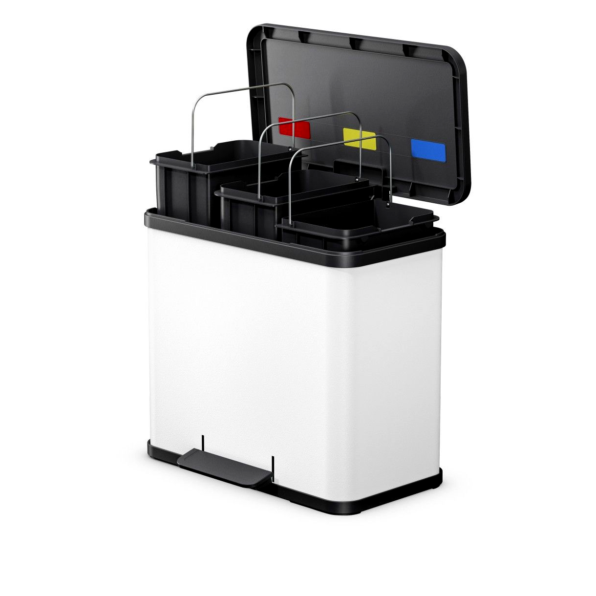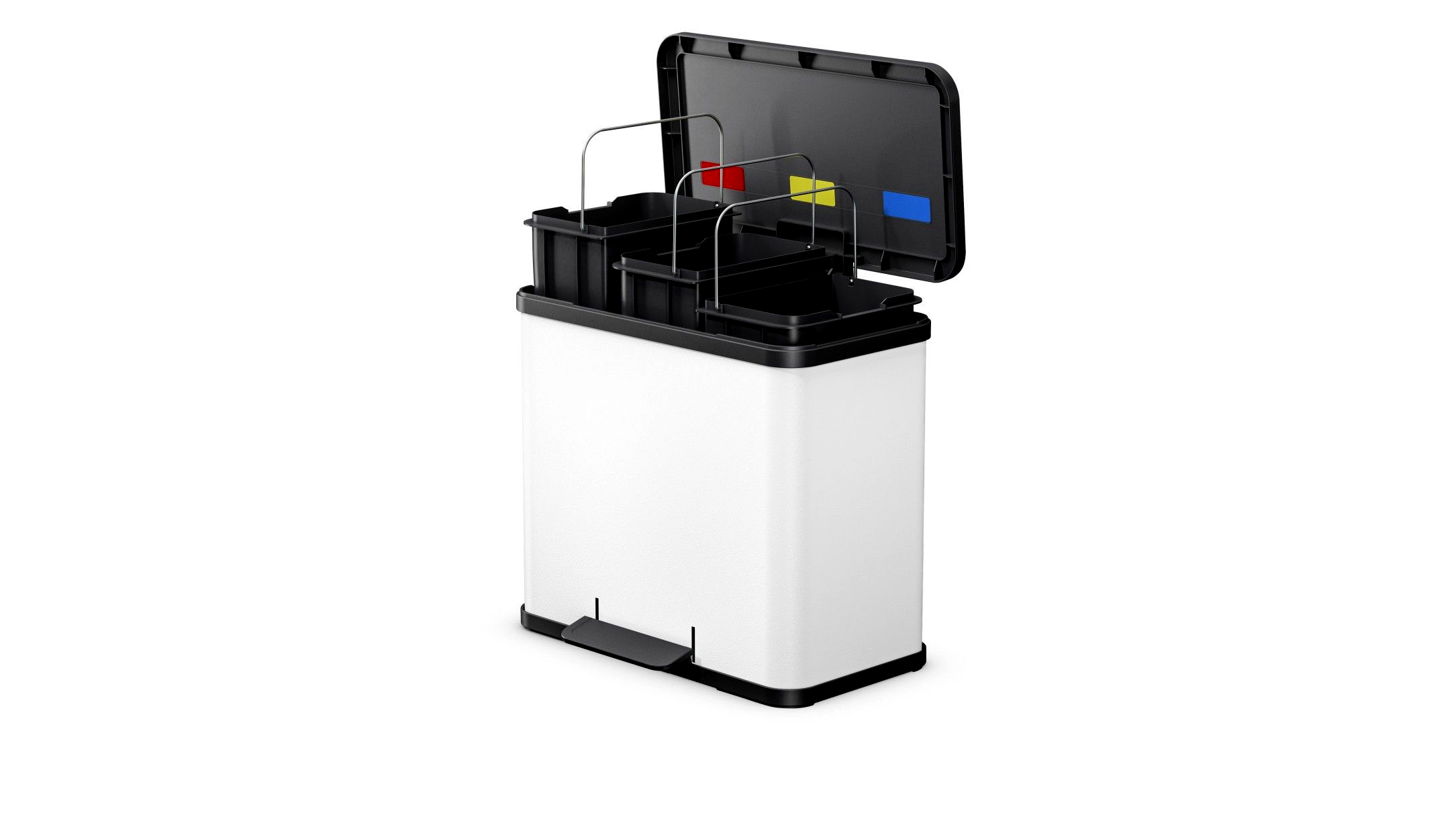 • Szelektív gyűjtés 3 rekesszel: 3 db, egyenként 9 literes belső tartállyal (összesen 27 liter) ideális a papír, műanyag, üveg vagy biohulladék külön válogatásához.