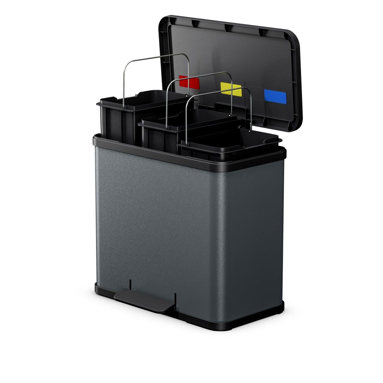 Hailo Öko trio Plus L 3x9 Literes műanyag + acél szelektív hulladékgyűjtő - Sötétszürke