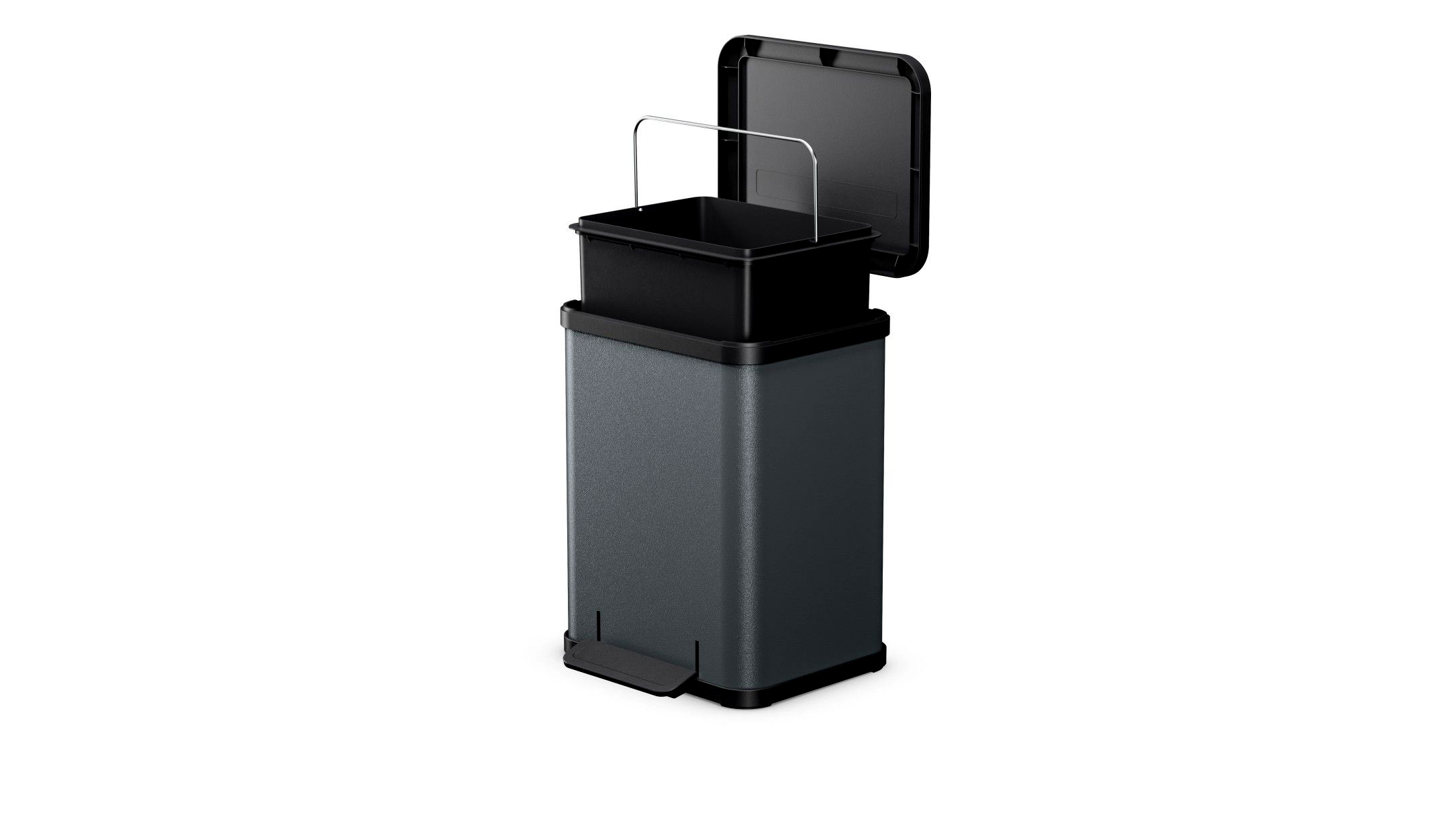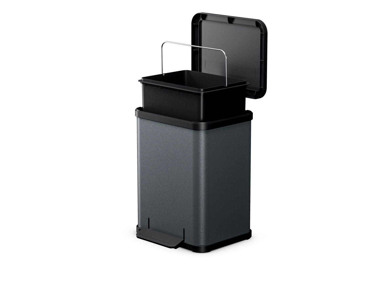 A Hailo 17 literes, matt sötétszürke szelektív hulladékgyűjtő elegáns, visszafogott megjelenésével és átgondolt funkcióival tökéletes választás modern konyhákba, irodákba és kisebb háztartásokba. Letisztult, téglalap alakú formája könnyen a fal mellé vagy a konyhapult alá illeszthető, miközben a csendes, kényelmes használatot a beépített soft close rendszer és az ergonomikus lábpedál biztosítja.