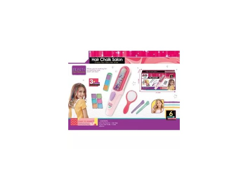 Ez a fodrászszalon szett hajkrétával tökéletes választás azok számára, akik szeretnék kifejezni egyéni stílusukat és kreativitásukat. A szett 3 különböző színkombinációt tartalmaz, amelyekkel izgalmas és változatos hajszíneket hozhatsz létre pillanatok alatt.