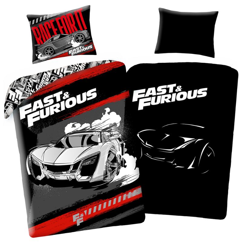 Egyszemélyes, sötétben világító, Halálos iramban mintával és „Fast & Furious" felirattal ellátott ágyneműhuzat a népszerű akciófilm-sorozat rajongóinak. Az igényesen kidolgozott, piros, szürke és fekete színű ágyneműszett maximum 60 fokon mosható, közepes hőfokon vasalható, valamint gépben alacsony hőfokon szárítható. A mosás során - a színek hosszabb ideig történő megőrzésének érdekében - javasolt a huzatok kifordítása. A huzatok cipzáras kivitelezésűek, így biztosan rajta maradnak majd a párnán és a paplanon.