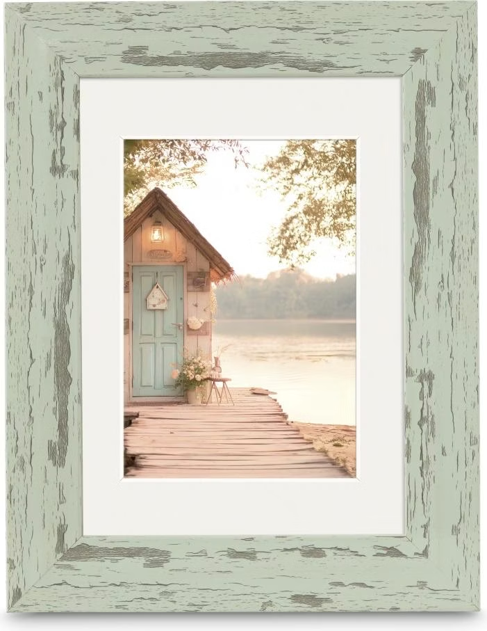 A Cottage kollekció pasztell árnyalatú képkerete letisztult, mégis játékos kiegészítője bármely enteriőrnek. Világos, pasztell-mint színe és keskeny profilja finoman keretezi a fotókat, míg a beépített paszpartu elegánsan kiemeli a kép témáját és fókuszba helyezi az emlékeidet.