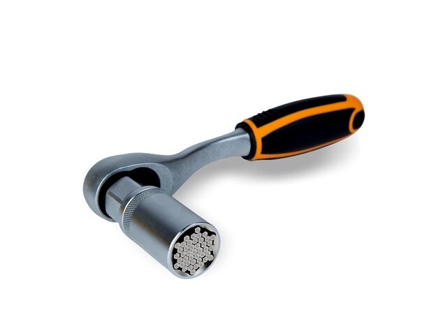 A Handy 10862 univerzális krova kulcs innovatív konstrukciójával és 43 db edzett acél betétjével forradalmasítja a csavarozás élményét. Minden egyes betét külön-külön besüllyed, lehetővé téve a kulcs automatikus alkalmazkodását a csavarozni kívánt tárgy formájához.
