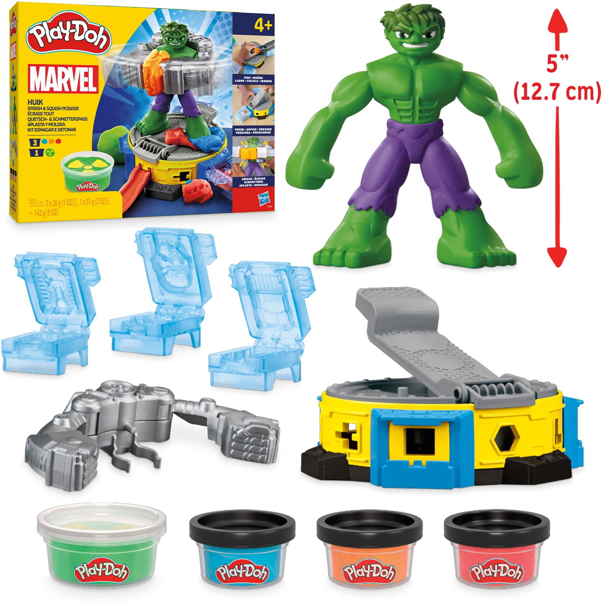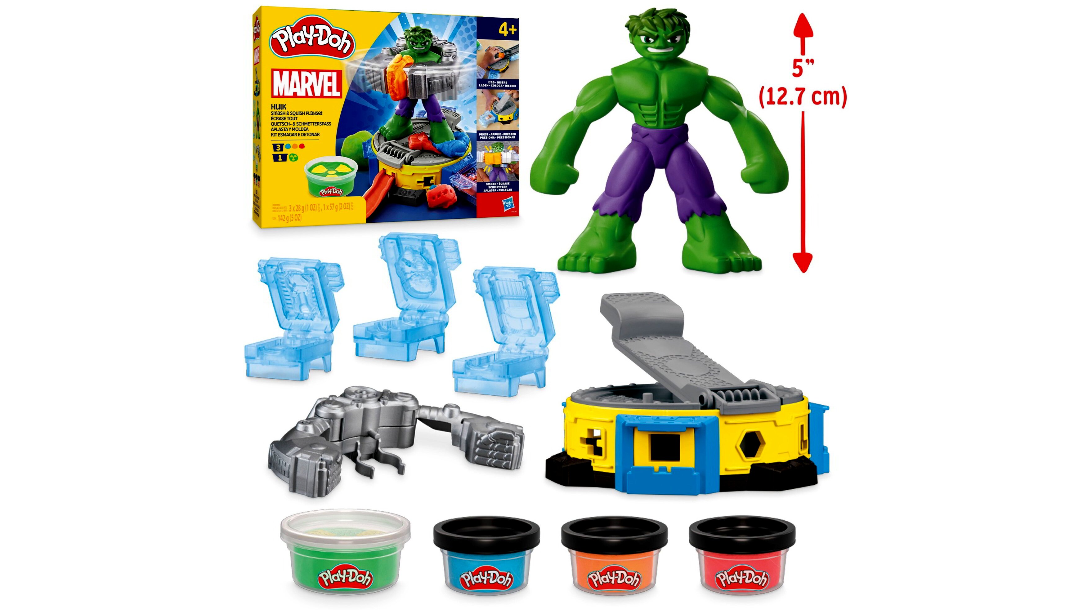 - Az erős Power-ruhával felszerelt Hulk, aki zúzhatja és összenyomhatja a Play-Doh formákat