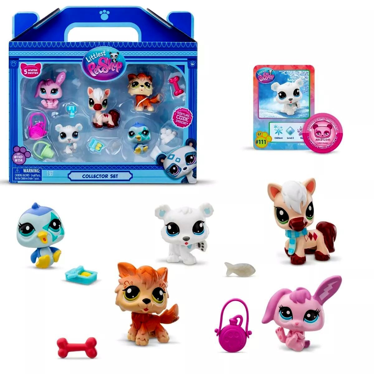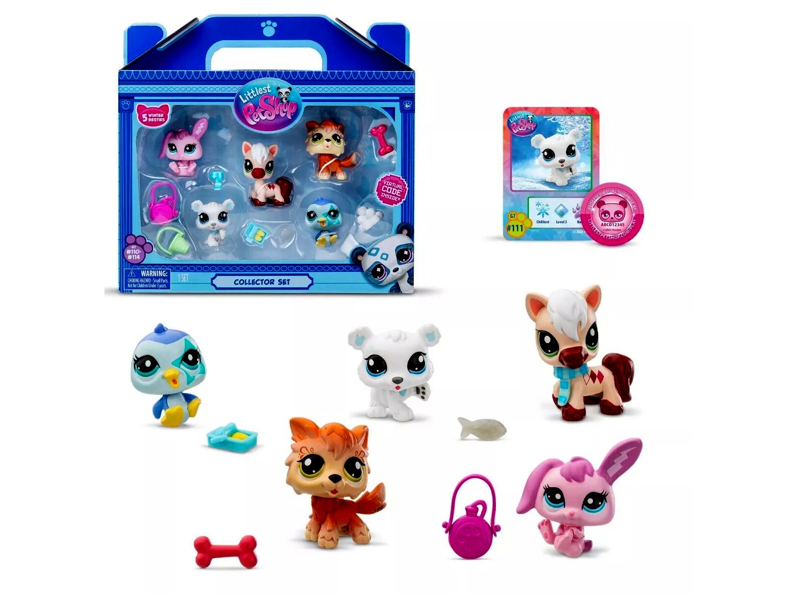 Merülj el a tél varázslatos világában és ismerkedj meg a legújabb Littlest Pet Shop barátokkal! Ez a különleges szett 5 darab téli állatkát tartalmaz, akik mindenki szívét felolvasztják mosolyukkal és ellenállhatatlan bólogató fejükkel. Tartoznak hozzá további kiegészítők is, hogy még izgalmasabb legyen a játék! Az érmén található kóddal pedig még több virtuális meglepetés vár az LPS online világában.