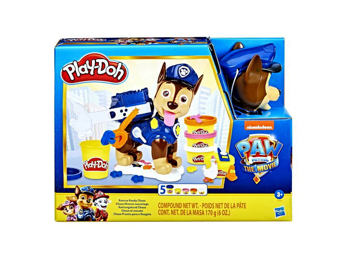 Chase készen áll a mentésre, de szüksége van egy gyermek segítségére és kreativitására ahhoz, hogy sikeresen felkészüljön a mentőakcióra. Ez a PAW Patrol játék már 3 éves kortól meghívja a gyerekeket egy kis állatos móka modellezésére. A nagy Chase figura rengeteg lehetőséget kínál, hiszen Chase viccesen kidugja a nyelvét, és a formákkal hősies alkotások születnek.