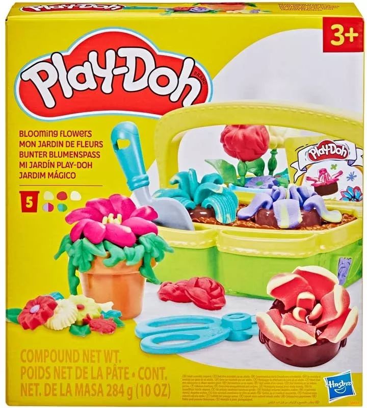 - 5 tégely színes Play-Doh gyurma - változatos színek, hogy minden virág egyedi lehessen.