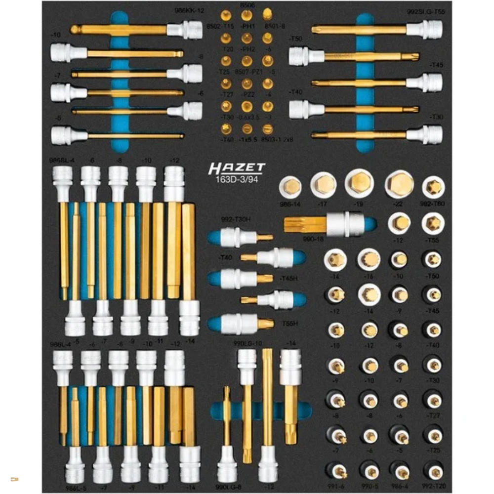 Ez a 94 részes, prémium minőségű szerszámmodul kifejezetten professzionális autóipari és ipari felhasználásra készült, ahol a precíz illeszkedés, a hosszú élettartam és az áttekinthető rendszerezés alapkövetelmény. A készlet ideálisan illeszkedik a HAZET Assistent 179NXXL-8D műhelykocsi 522 mm mélységű fiókjaiba, és a HAZET 1/2++ rendszermérettel kompatibilis.