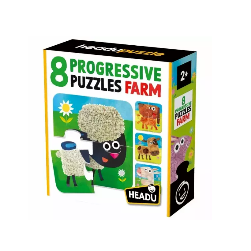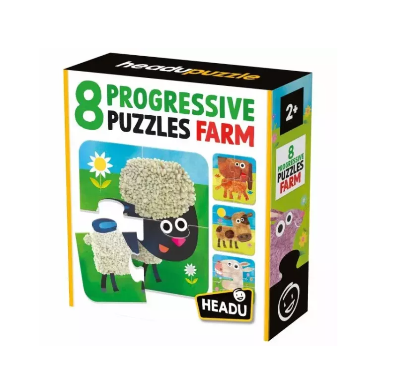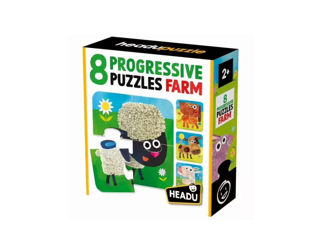 • Tartalom: 8 db különálló, progresszív kirakó farmállatokkal