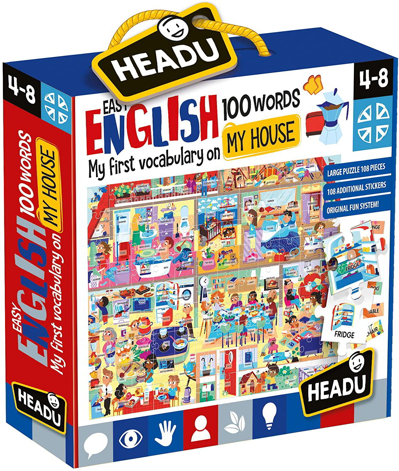 A Headu "Tanulj könnyen angolul - Otthon" nyelvoktató puzzle egy igazán izgalmas és szórakoztató módja a gyerekek számára az angol nyelv elsajátításának. Ez a puzzle nem csak egy egyszerű játék, hanem oktatási eszköz is, amely segíti a legkisebbeket az otthonhoz kapcsolódó angol szavak és kifejezések játékos megismerésében.