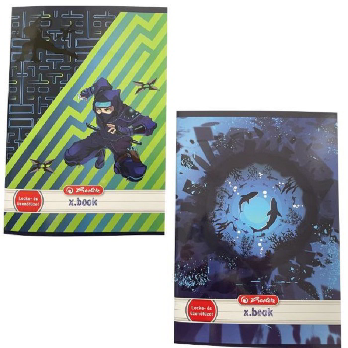 A5-ös méretű, 32 lapos leckefüzet Boys/Girls, kapcsozott kivitelben, mintás fedlappal, hófehér belívvel, az x.book termékcsalád része.