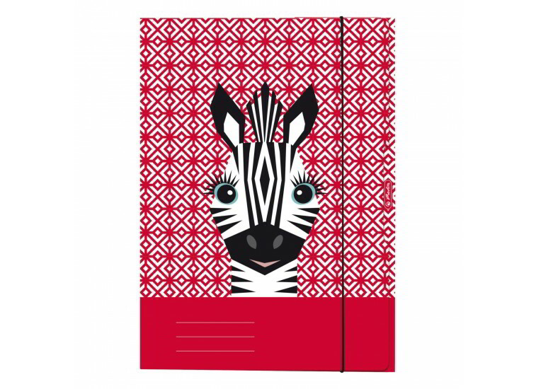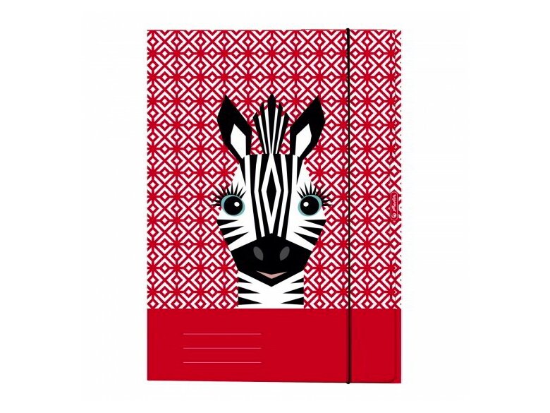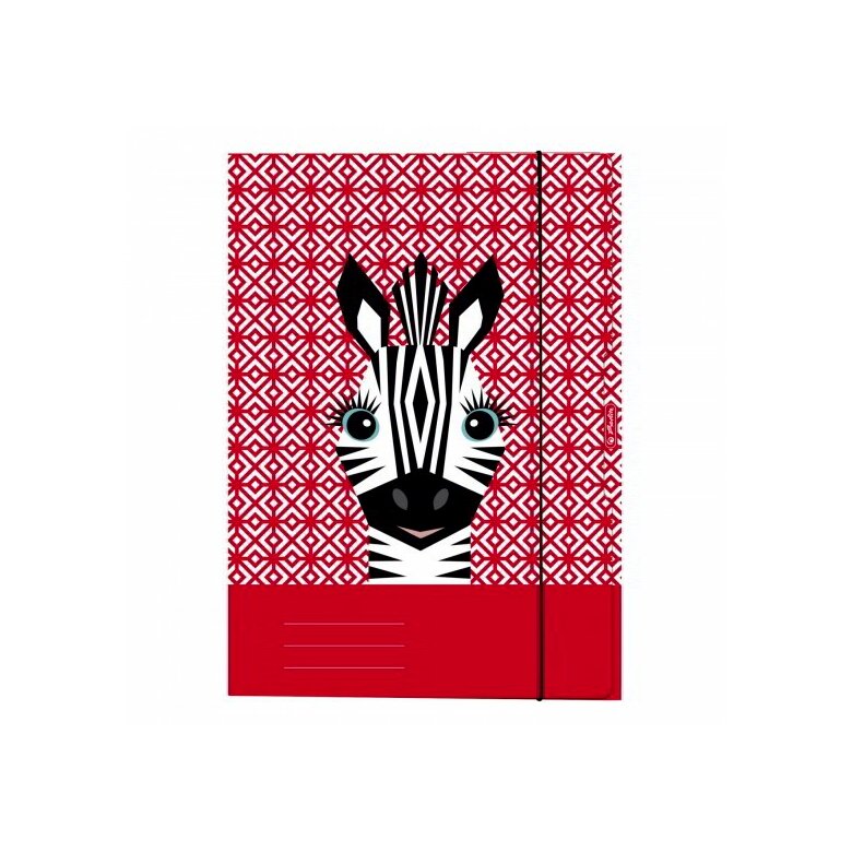 A4-es méretű iratok tárolására alkalmas gumis gyűjtőmappa Cute Animals Zebra, feliratozható, pólyás, magasfényű kartonból.