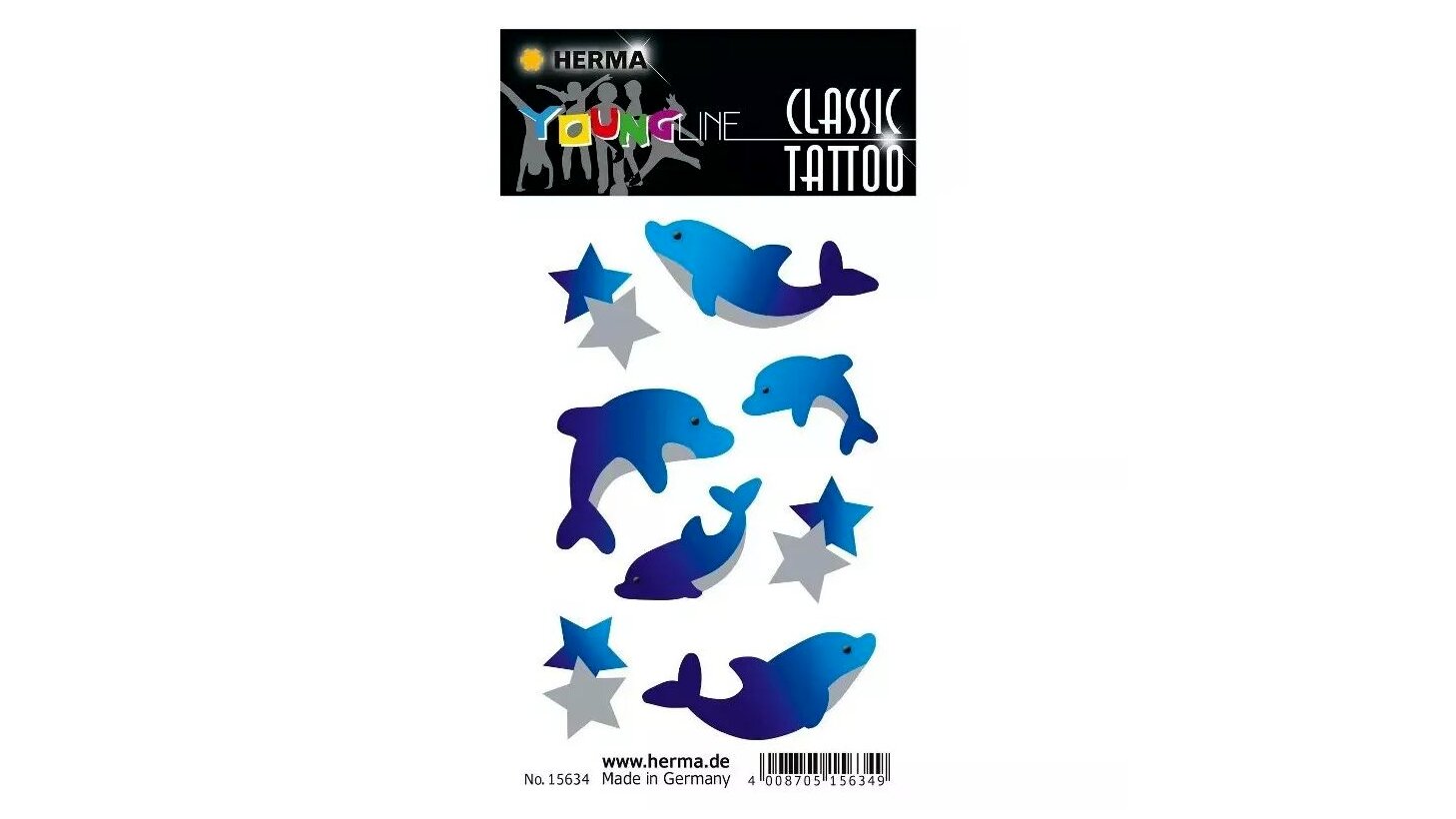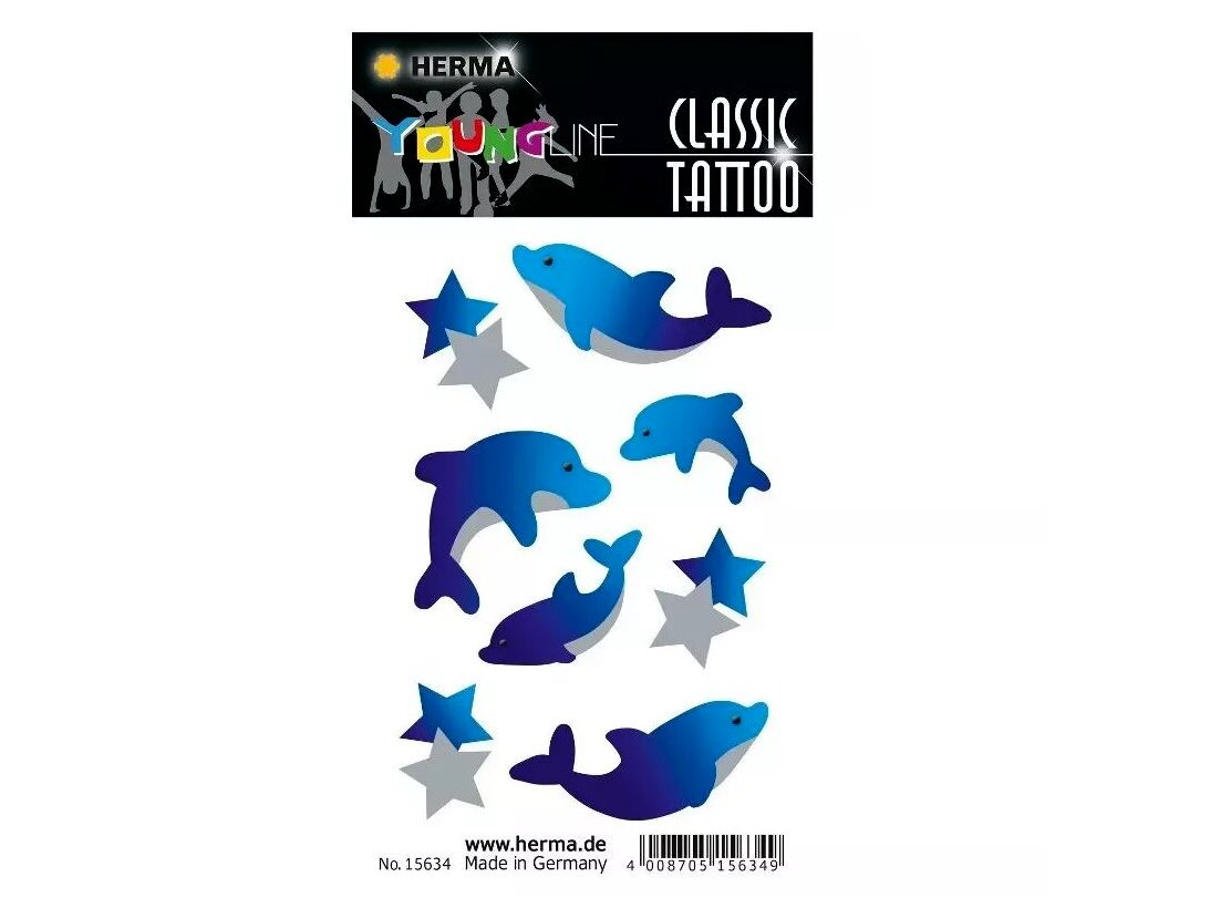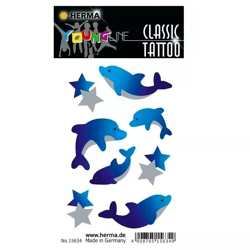 Varázsolja el gyermekét vagy saját magát a Herma delfin mintás tetováló matrica csomagjával! Ezek a gyönyörű, vízi világból inspirált minták nem csak szemet gyönyörködtetők, de bőrbarát anyagokból készültek, így biztonságosan élvezhetők.