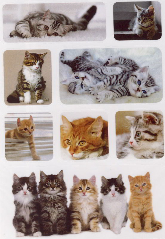 Ezek a cicák rendkívül aranyosak. Ragasszátok fel őket matricás albumba vagy akár füzetekre.