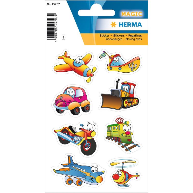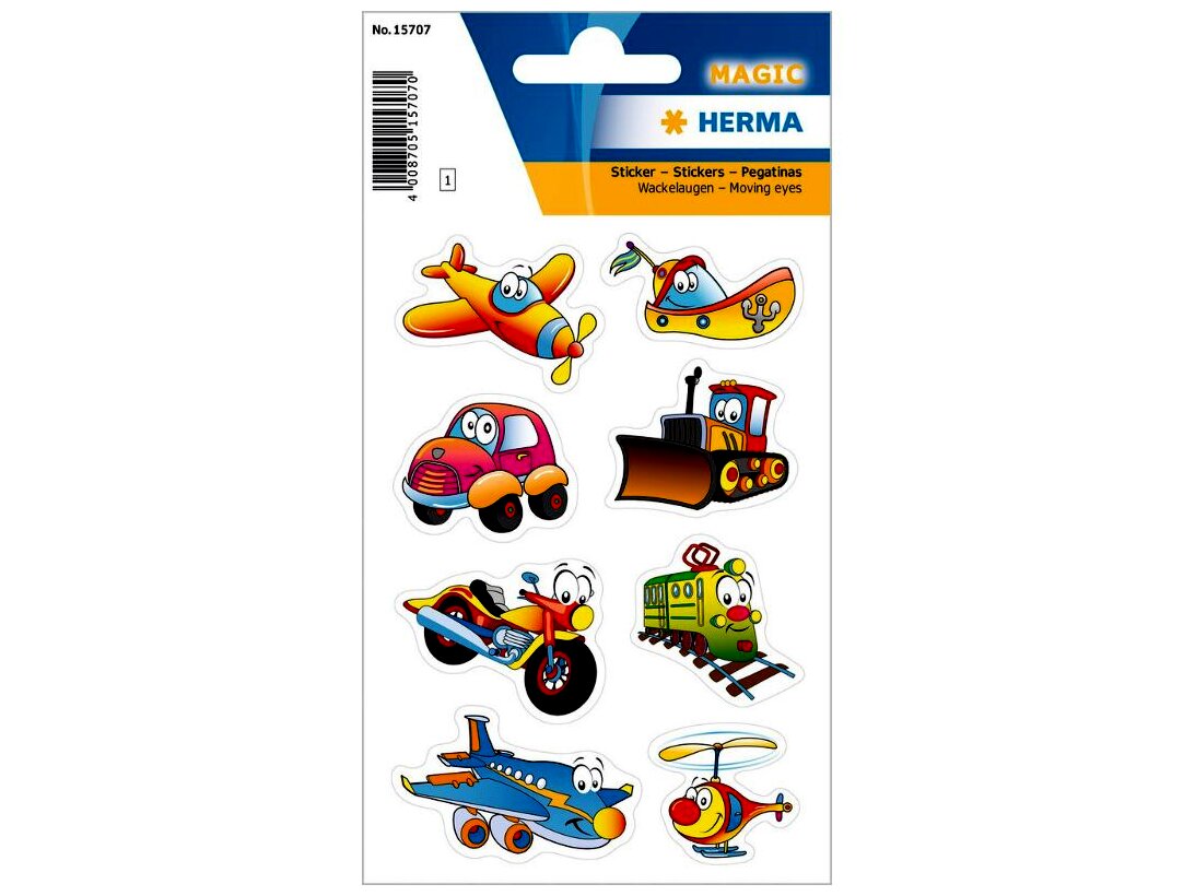 Öntapadós dekor matricacsomag, amely vidám, szemecskékkel ellátott járműveket (pl. autó, repülő, vonat, helikopter) ábrázol. Használható mappák, füzetek, üdvözlőlapok díszítésére, óvodai és iskolai kézműves foglalkozásokhoz, tárgyak felmatricázásához.