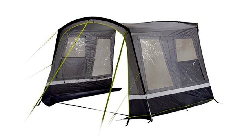 A High Peak Trento 2.0 napellenzője nyitott, tágas sátor kerek íves tetővel. A négy átlátszó fóliaablak sok fényt enged be a sátorba. A belső cipzáras ablakszárnyak tetszés szerint és időjárási körülmények között működtethetők. A polietilén sárvédő megakadályozza a szennyeződések és a nedvesség bejutását, valamint véd a huzat ellen. A neonsárga kötelek és viharhevederek még alkonyatkor is jól láthatóak. A Trento 2.0 busz napellenző gyorsan és egyszerűen felállítható és a járműre rögzíthető.