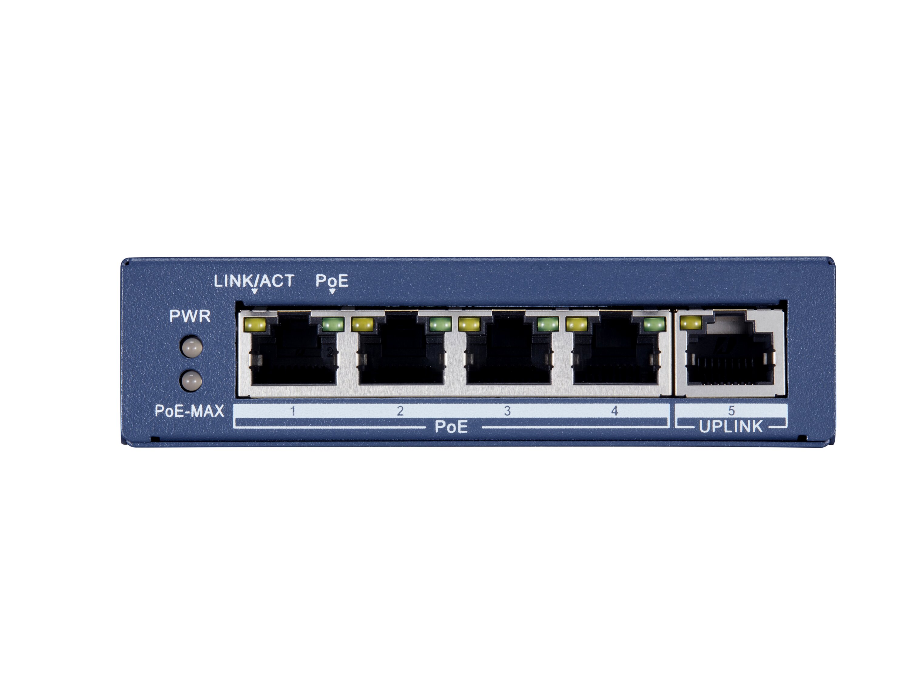 - 4 × Gigabit PoE port, 1 × Gigabit RJ45 port