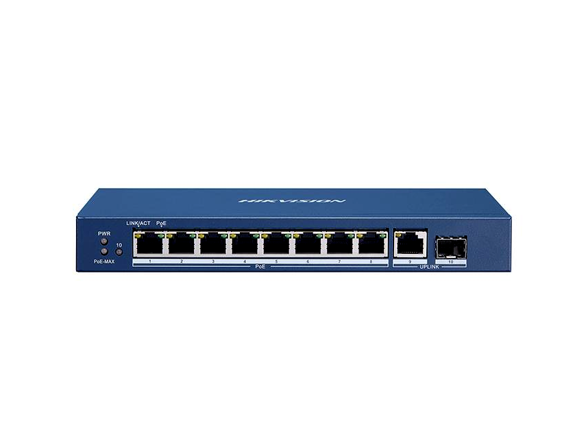 - 8 × gigabites PoE port, 1 × gigabites RJ45 port és 1 × gigabites SFP optikai port.