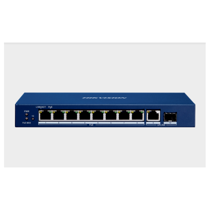 - 8 × Gigabit PoE port, 1 × Gigabit RJ45 port, 1 × Gigabit SFP száloptikai port