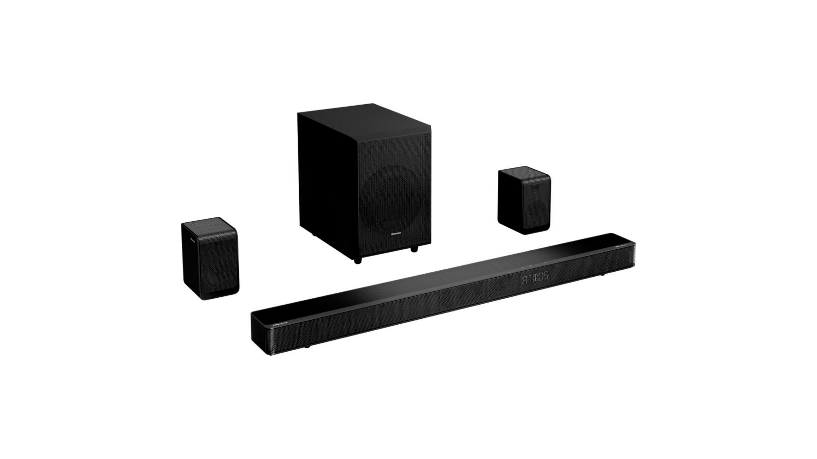 Alakítsd nappalidat lenyűgöző hangzású házimozivá ezzel a nagy teljesítményű, 5.1.2 csatornás hangprojektor rendszerrel, amely a Dolby Atmos és DTS:X technológiáknak köszönhetően térhatású, magával ragadó hangzást biztosít. A 500 Watt összteljesítmény, a vezeték nélküli mélyláda és a felfelé sugárzó hangszórók együtt olyan filmszerű élményt teremtenek, amely eddig csak moziteremben volt megszokott.