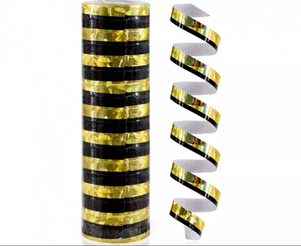 Fokozza ünnepi alkalmait a lenyűgöző látványvilággal, amit a hologramos szerpentin biztosít! Az arany és fekete pompás kombinációjával bármely rendezvényt elegánsabbá és emlékezetesebbé tehetsz.