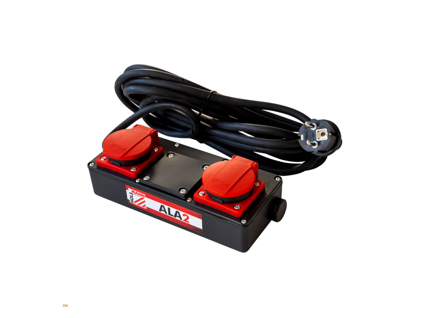 Holzmann ALA2 230V Kompakt Műhely Elosztódoboz 2 aljzatos - Fekete/Piros