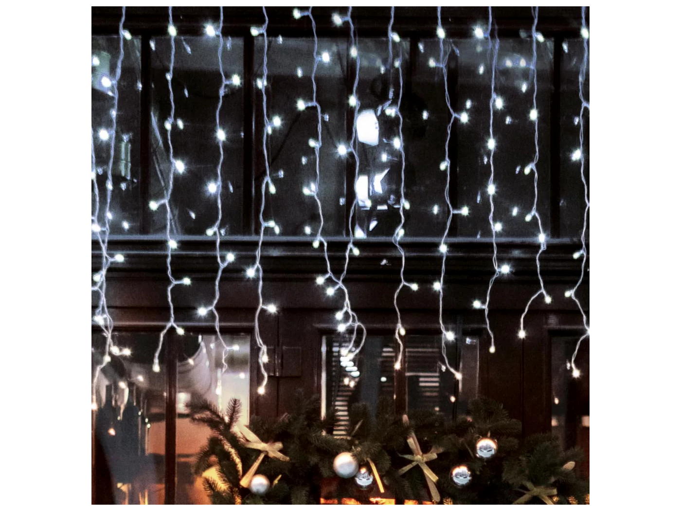 Ez a LED-es jégcsap fényfüggöny elegáns, mégis látványos dekorációs megoldás, amely ideális választás homlokzatokra, erkélyekre, teraszokra, kirakatokba vagy akár a nappali ablakába. Hidegfehér fénye tiszta, ragyogó hatást kelt, és modern, letisztult ünnepi hangulatot teremt.
