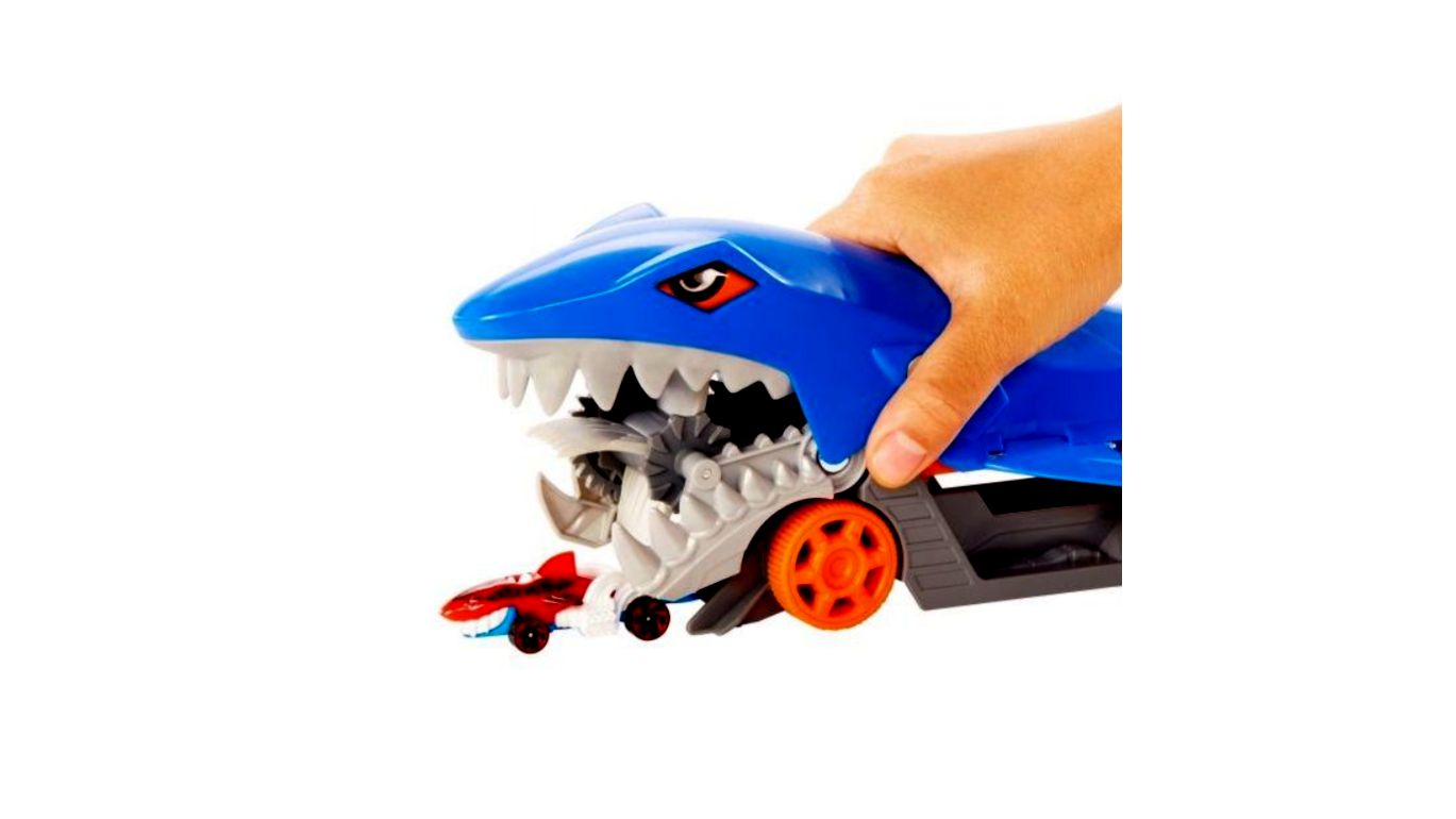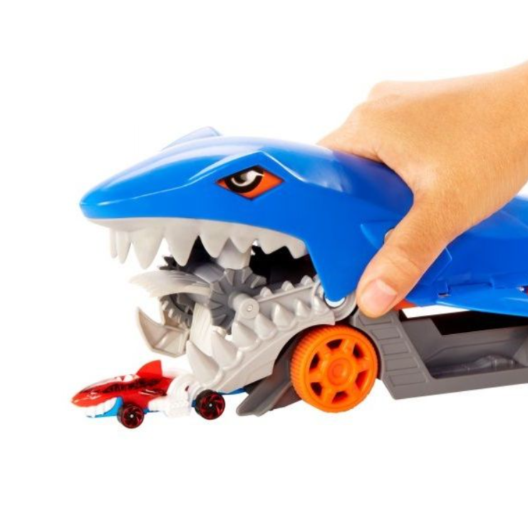 Hot Wheels Citybe megérkezett az egyik legmenőbb szörny: A cápa, amelyik kisautókat eszik. Bizony! Persze nem kell megijedni, ahelyett, hogy tönkretenné, egészben nyeli le őket - és miután ezt megtette egyből jámbor kisautószállítóvá változik. Hogy szabadulhat az elfogyasztott jármű? Hát a hátsó rámpán át! A Hot Wheels autófaló cápa készlet egy kisautót tartalmaz, de akár öt kisautó egyidejű szállítására is képes!