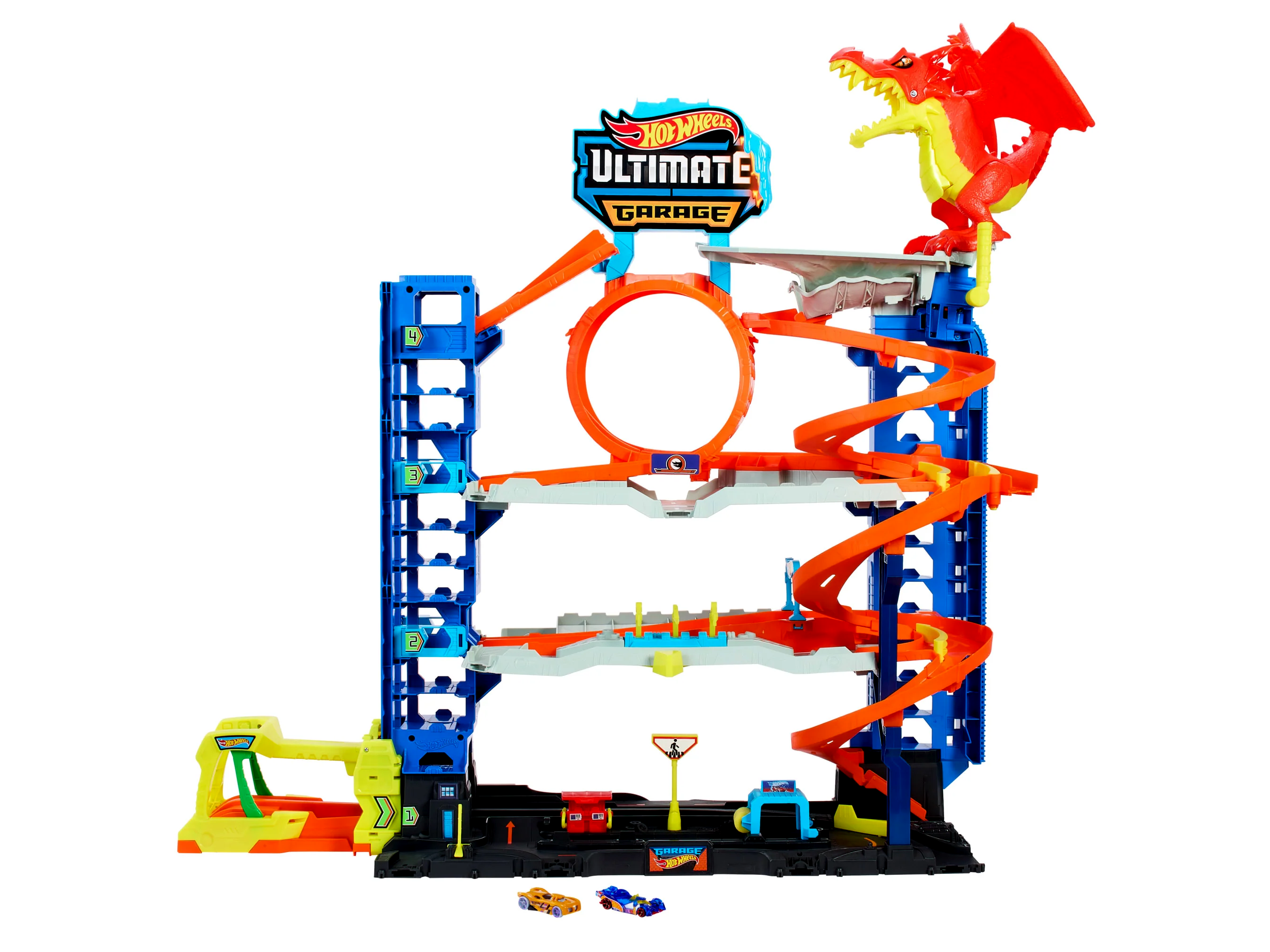 - Versenyezz, kaszkadőrözz és vívj csatát egy sárkánnyal a többszintes Hot Wheels City Ultimate Garage-ban.