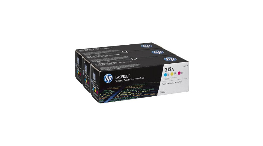 Átmenetileg nem rendelhető. HP 312 cián/bíbor/sárga LaserJet festékkazetták/ háromdarabos kiszerelés (CF381A/CF382A/CF383A)