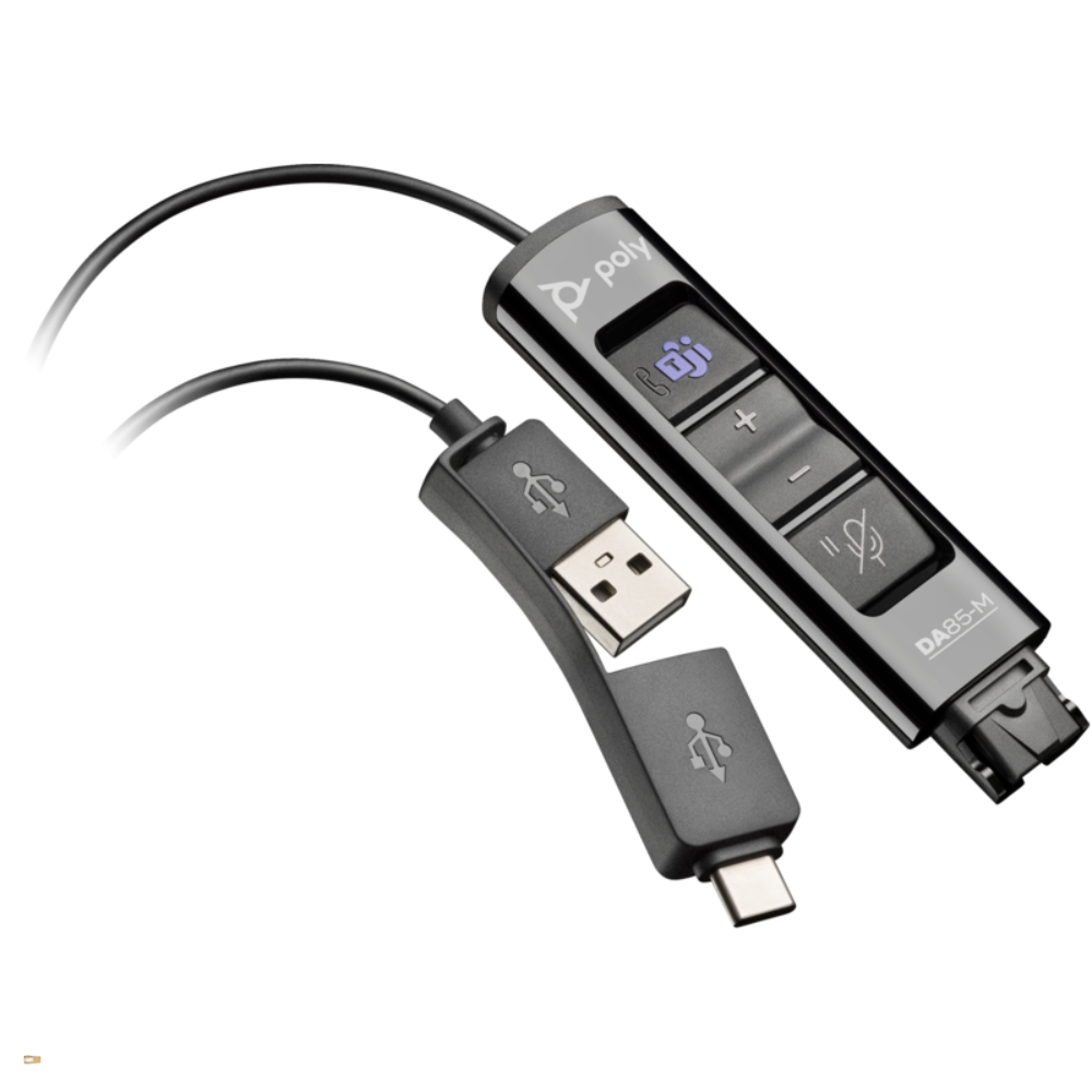 A HP Poly DA85-M USB–QD hangkártya adapter ideális megoldás, ha meglévő, gyorscsatlakozós (QD) Poly/Plantronics vezetékes headsetedet szeretnéd modern USB-s eszközökhöz csatlakoztatni. Professzionális szélessávú hangminőséget, Microsoft Teams tanúsítást és USB-A / USB-C kettős csatlakozási lehetőséget kínál, így tökéletes választás hibrid munkavégzéshez, irodai és call center környezetbe.