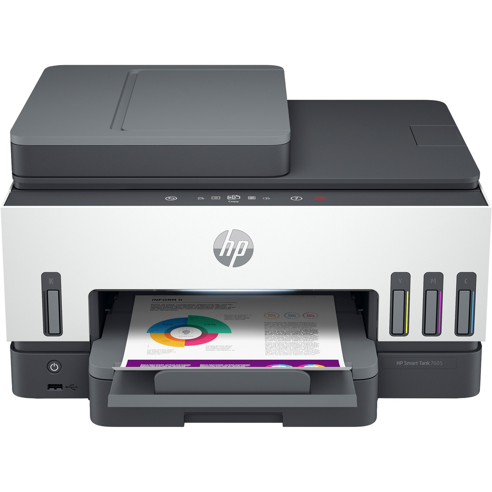 A Smart Tank 7605 hatékonyan és kiváló minőségben nyomtat: Ez a patronok nélküli többfunkciós tintasugaras nyomtató integrált tintatartállyal működik.