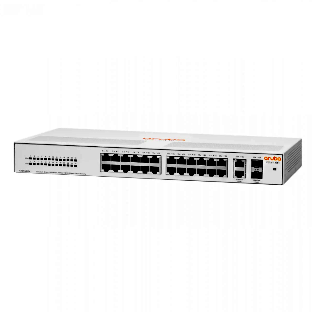 • 26× Gigabit Ethernet + 2× SFP – 26 darab 10/100/1000 Mbps RJ-45 port és 2 darab 1GbE SFP uplink nagyobb hálózatba vagy optikai gerincre kapcsoláshoz.