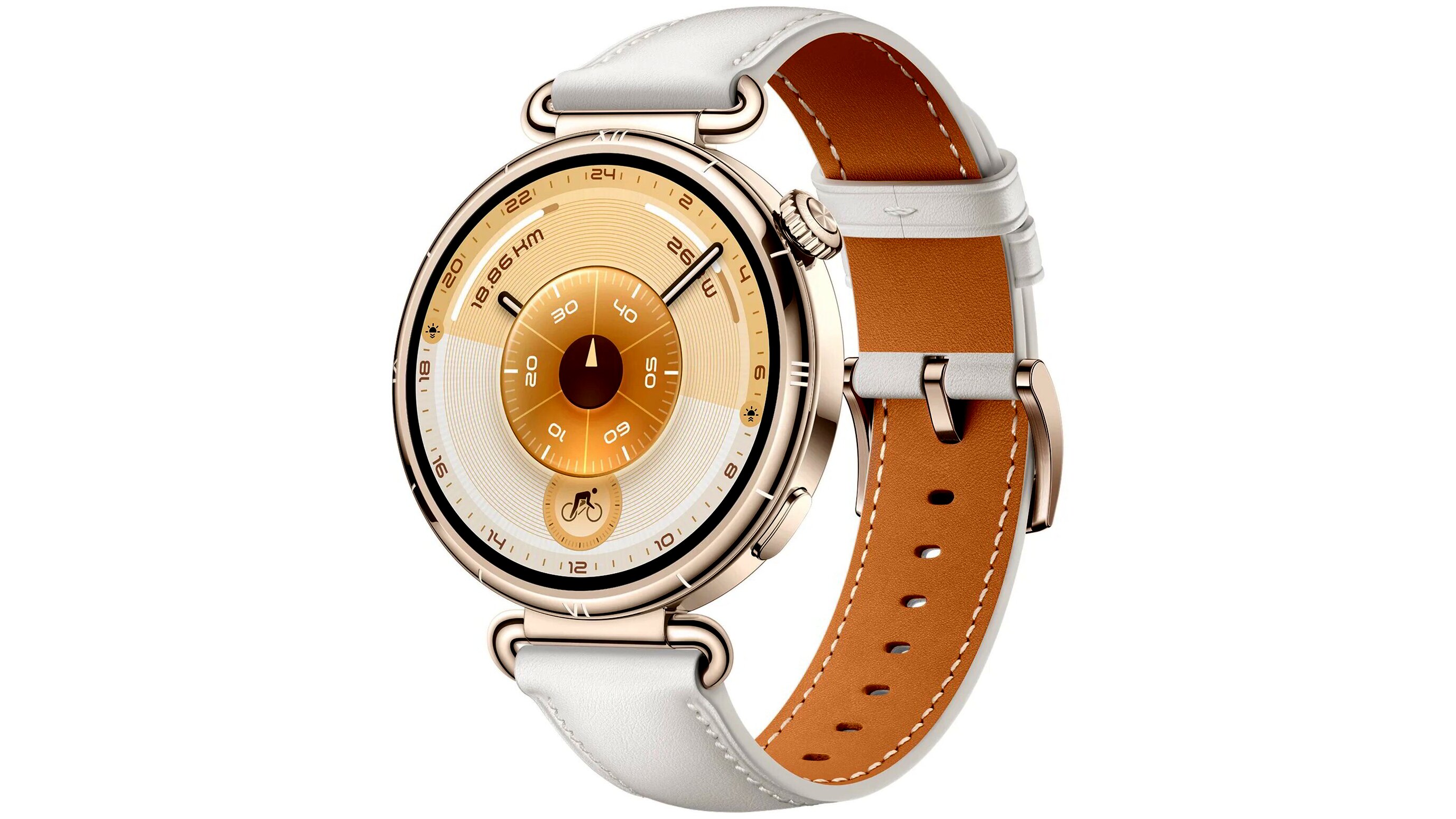 A Huawei legújabb prémium okosórája elegáns megjelenést, kiemelkedő kijelzőt és fejlett egészség- és sportfunkciókat kínál, különösen vékony csuklóra tervezett, kompakt méretben. Az aranyszínű óraház és a fehér kompozit bőrszíj kifinomult, nőies megjelenést ad, miközben a kialakítás kényelmes, akár egész napos viselés mellett is.