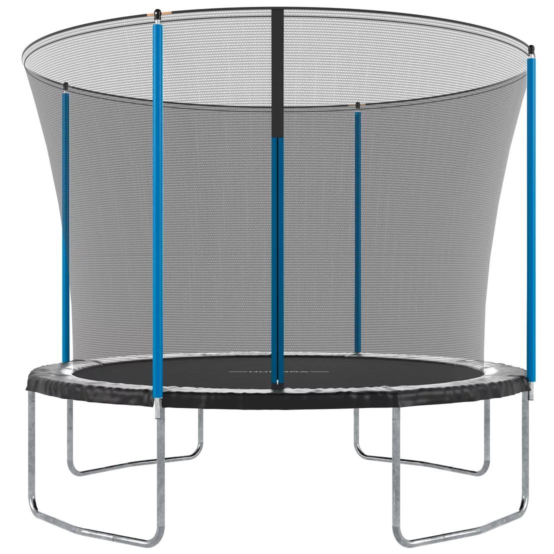 A szakadásálló, nylon erősítésű peremvédő és a párnázott rudak garantálják a felhőtlen és biztonságos ugrálást. A trambulin kompakt kialakításának köszönhetően nem igényel nagy helyet, mivel nem rendelkezik kinyúló lábakkal vagy hálórudakkal, így kis kertekben is kényelmesen elhelyezhető.