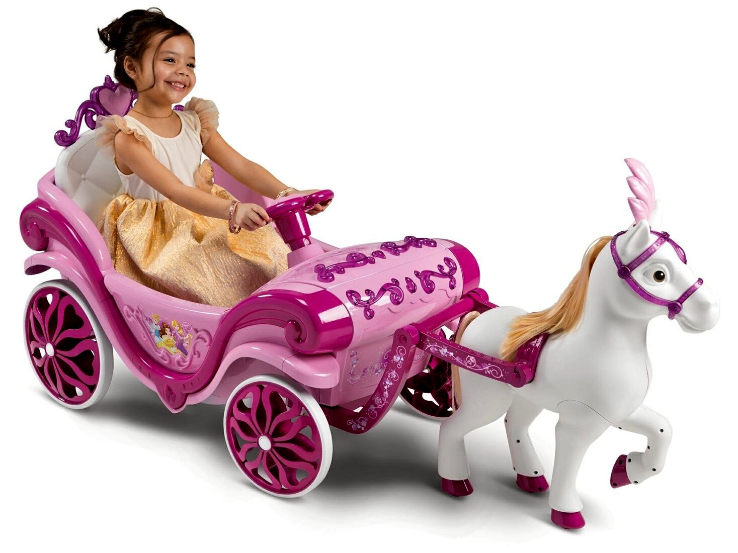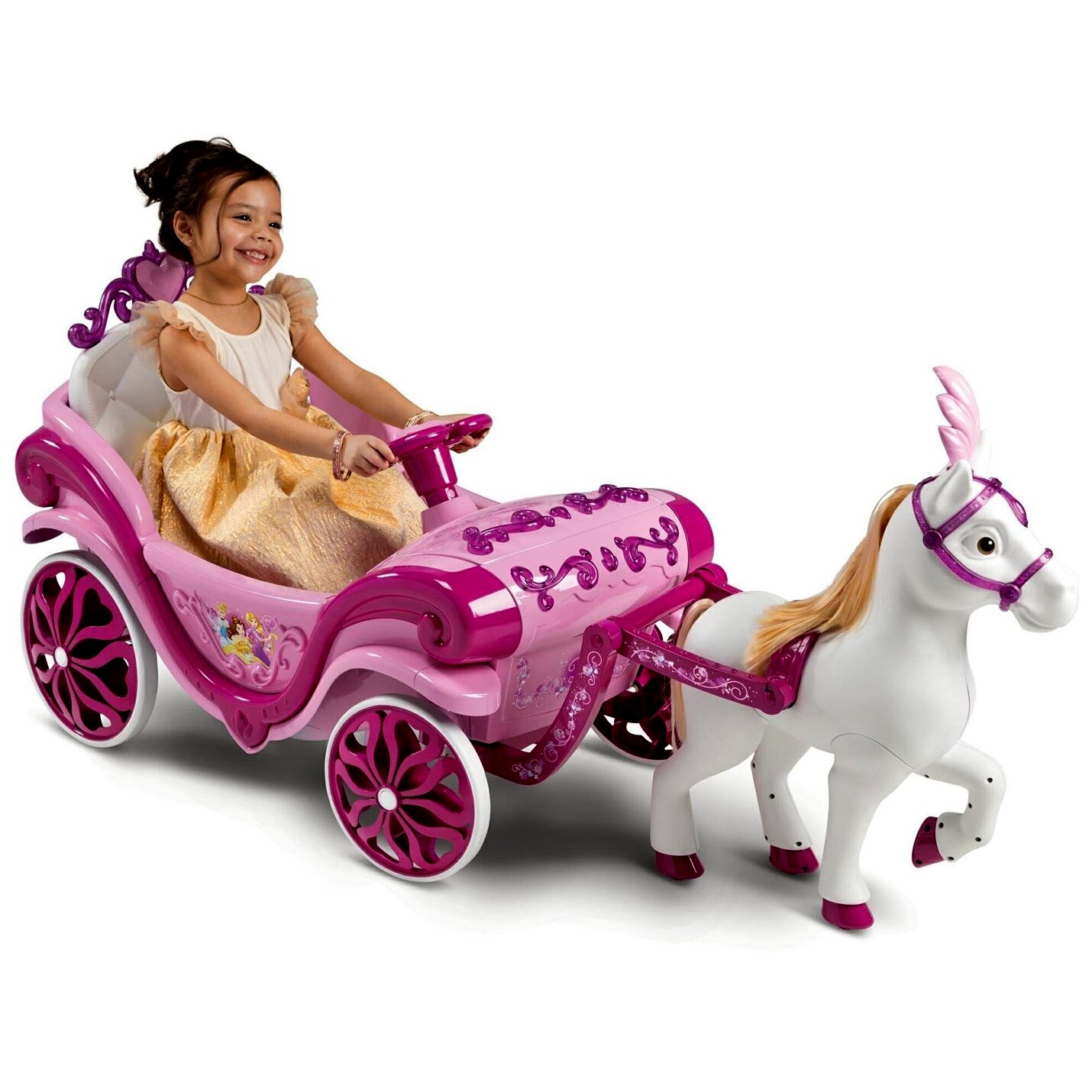 Engedd, hogy a gyermeki fantázia szárnyra kapjon ezzel a mesébe illő, akkumulátoros lovas szánnal! A csillogó, rózsaszín kivitel, a díszes részletek és a káprázatos Disney Hercegnők világa egyesül benne, hogy a mindennapi játékból valódi királyi élmény szülessen – a nappaliban, a kertben vagy a járdán egyaránt.