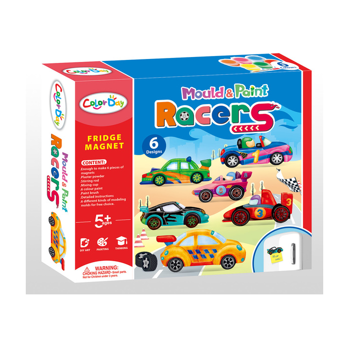 Versenyautós hűtőmágnes készítő szett abszolút kedvence lesz a kisfiúknak hiszen saját ízlésük szerint hatféleképpen dekorálhatják ki saját versenyautó hűtőmágnesüket. A játék fejleszti az alkotói készséget, kreativitást és kézügyességet. 3 éves kor alatt nem ajánljuk a terméket.