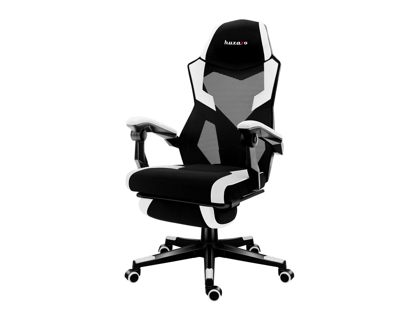 • Gyártó: Huzaro • Modell: Combat 3.1 White • Anyag: szövet, háló, szénszál mintázatú borítás, NylonGuard műanyag elemek • Görgők: poliuretán gumi, 50 mm átmérő • Ülésmagasság állítás: kb. 10 cm tartományban • Maximális terhelhetőség: akár 150 kg • Tanúsítvány: SGS
