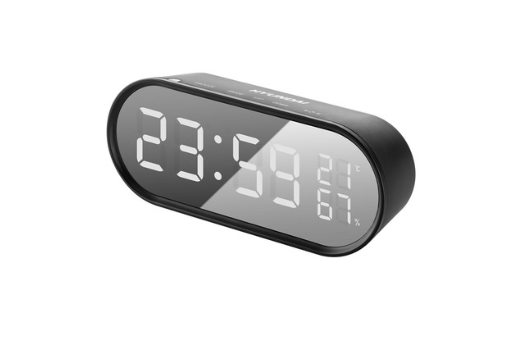 A Hyundai AC331 ébresztőóra ötvözi az eleganciát a praktikussággal. A nagyméretű LED kijelzőjének köszönhetően azonnal, jól látható a pontos idő. A kijelzőn az aktuális beltéri hőmérsékleten kívül a helyiség páratartalmát is jelzi. Az automatikus fényerőszabályzó funkciónak köszönhetően napsütéses időben is garantált a kijelző zavartalan leolvasása, éjszaka pedig a csökkentett fényerő biztosítja a zavartalan alvást. Az idő 12 vagy 24 órás formátumban jeleníthető meg a készüléken.