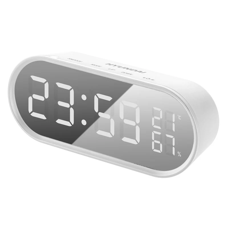 A Hyundai AC331 ébresztőóra ötvözi az eleganciát a praktikussággal. A nagyméretű LED kijelzőjének köszönhetően azonnal, jól látható a pontos idő. A kijelzőn az aktuális beltéri hőmérsékleten kívül a helyiség páratartalmát is jelzi. Az automatikus fényerőszabályzó funkciónak köszönhetően napsütéses időben is garantált a kijelző zavartalan leolvasása, éjszaka pedig a csökkentett fényerő biztosítja a zavartalan alvást. Az idő 12 vagy 24 órás formátumban is megjeleníthető a készüléken.