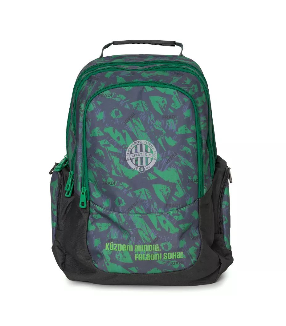 A sportolóknak és szurkolóknak tervezett kompakt hátizsák tökéletes választás mindennapi használatra is. A terepmintás design a Ferencváros hivatalos címerével ellátva garantáltan hűséges Fradi rajongóvá tesz mindenkit, aki viseli.