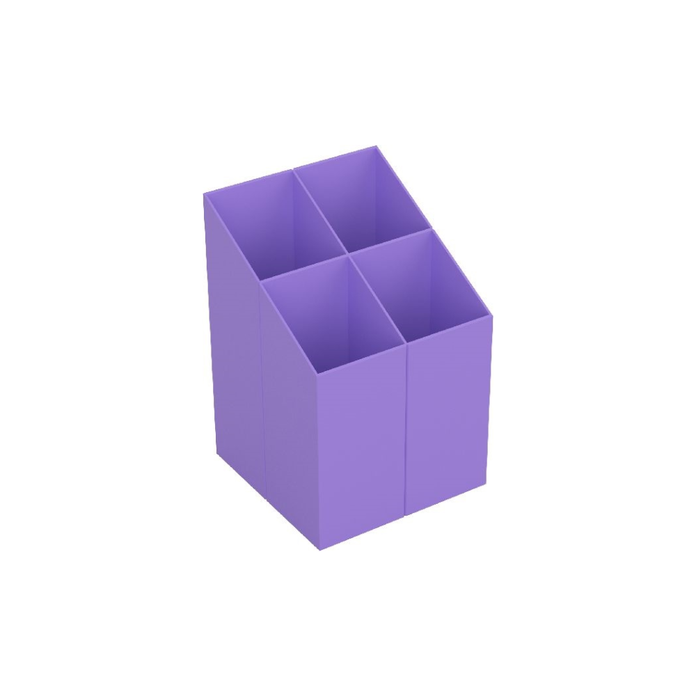 Ezt a 4 rekeszes asztali írószertartót a praktikusság és az esztétikai élményt szem előtt tartva tervezték. Az írószertartó szögletes kialakítása nemcsak modern megjelenést biztosít, hanem helytakarékos helykihasználást is. Rekeszei tökéletesen alkalmasak tollak, ceruzák, radírok és egyéb írószerek rendszerezett tárolására.