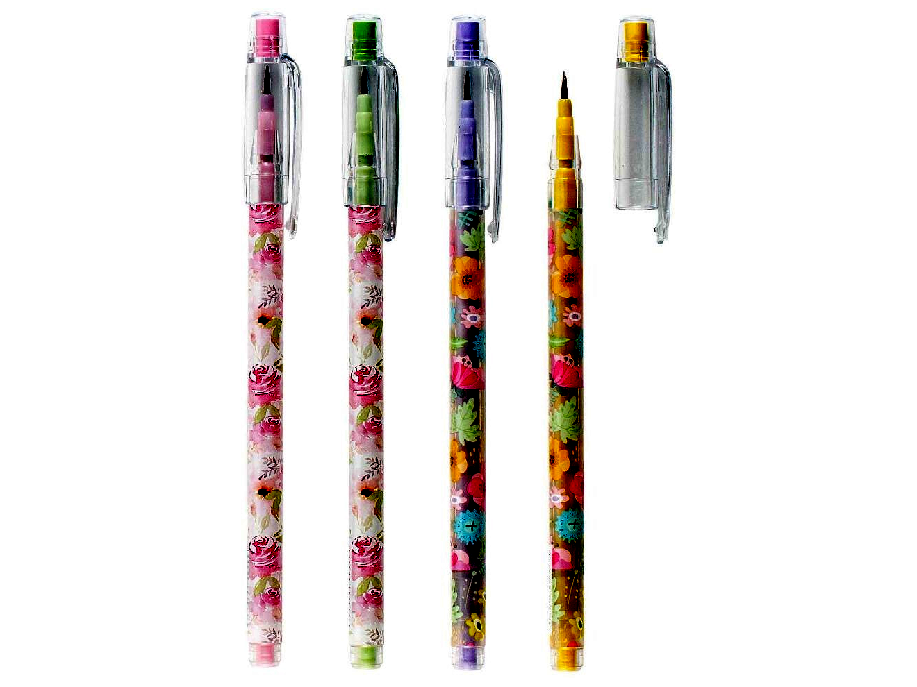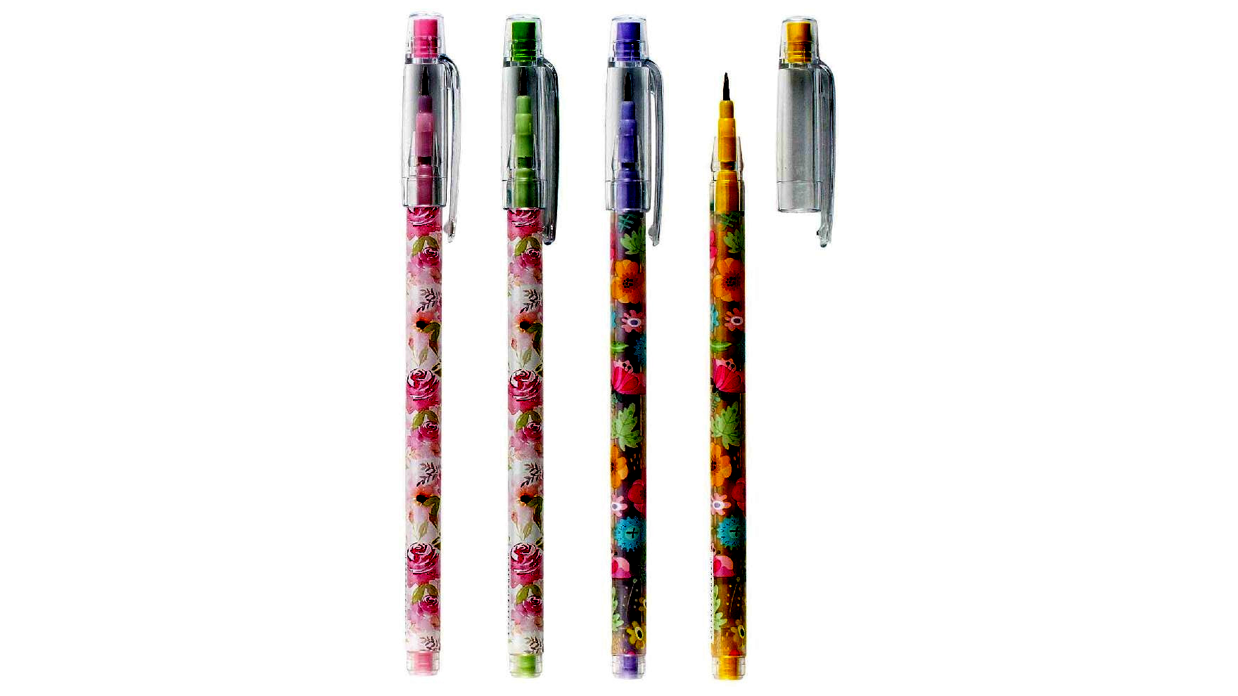 A ceruza felületét vidám, színes virágminták díszítik, amelyek kifejezetten vonzóvá teszik gyerekek, fiatalok és kreatív felnőttek számára is. A minták különböző változatokban érhetők el, a koncepció lényege a vidámság és a játékos megjelenés – a konkrét minta nem választható, minden darab egy kis meglepetés.