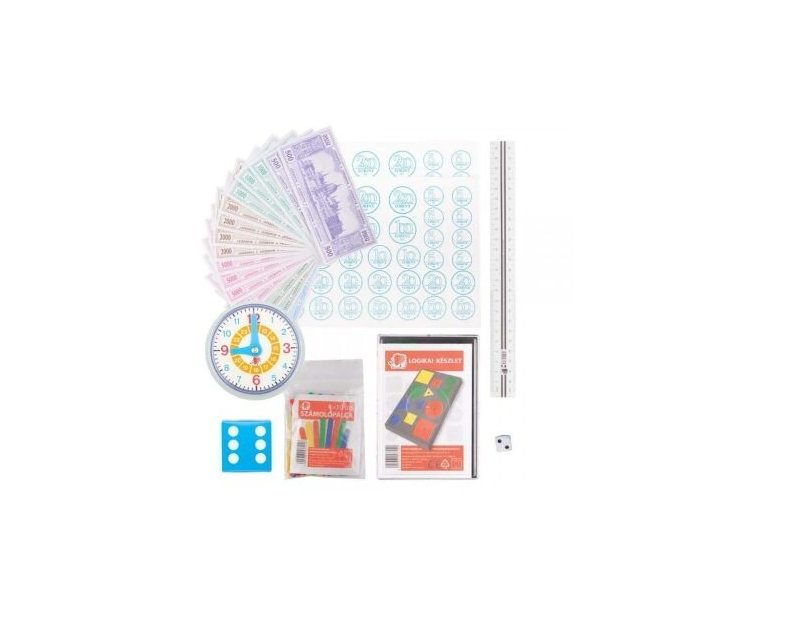 Az összeállításban található eszközök a tanítók és fejlesztőpedagógusok igényei alapján lettek kiválasztva, így lefedik az első osztály legfontosabb készségterületeit: számfogalom, mennyiségek érzékelése, időfogalom, mértékegységek és logikai gondolkodás. A műanyag elemek könnyűek, biztonságosak, jól tisztíthatók, a papír kiegészítő pedig kellően nagy és jól olvasható.