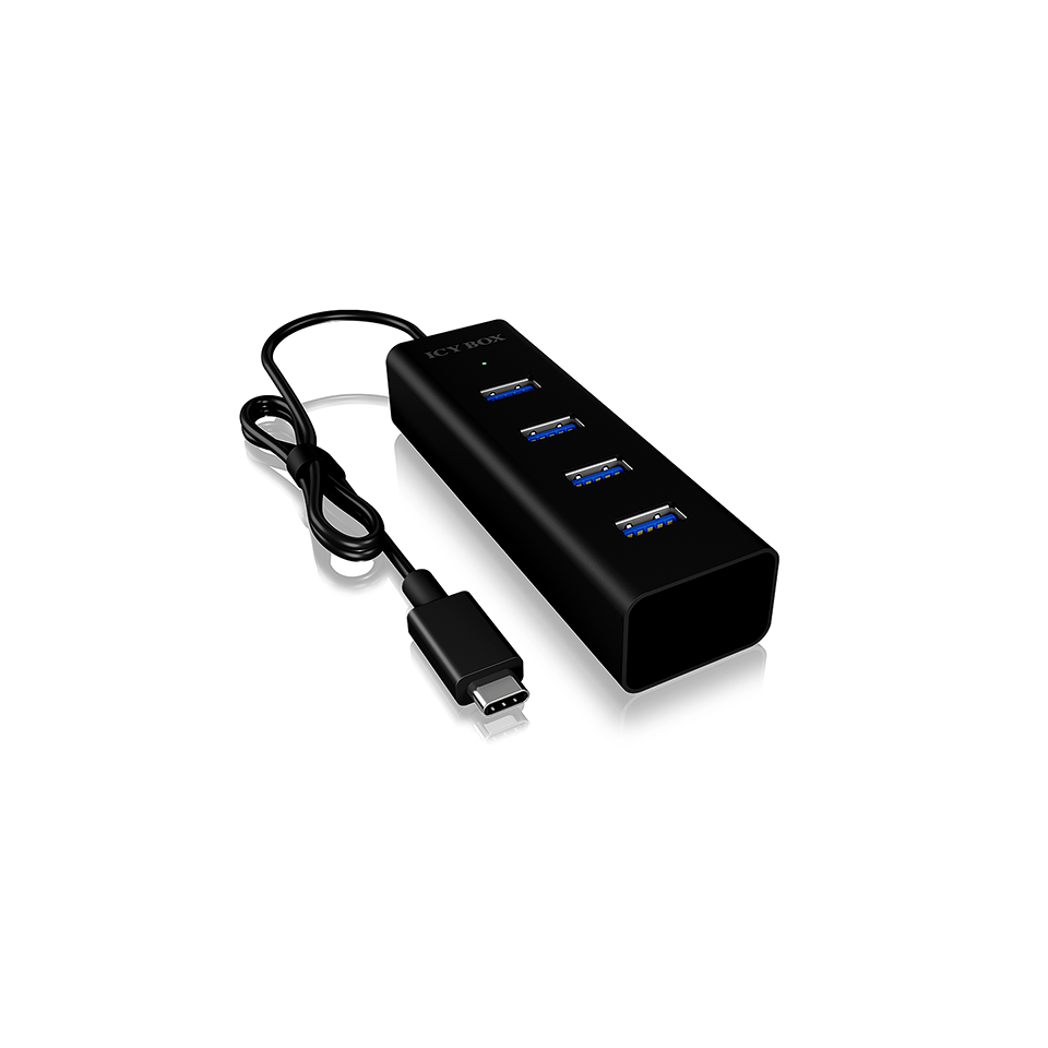 - Több csatlakozó: Az ICY BOX Hub egyetlen USB Type-C portot négy USB Type-A 3.0 csatlakozóra bővít. Így további csatlakozási lehetőségeket biztosít anélkül, hogy lemondanunk kellene az eszközeinkről.