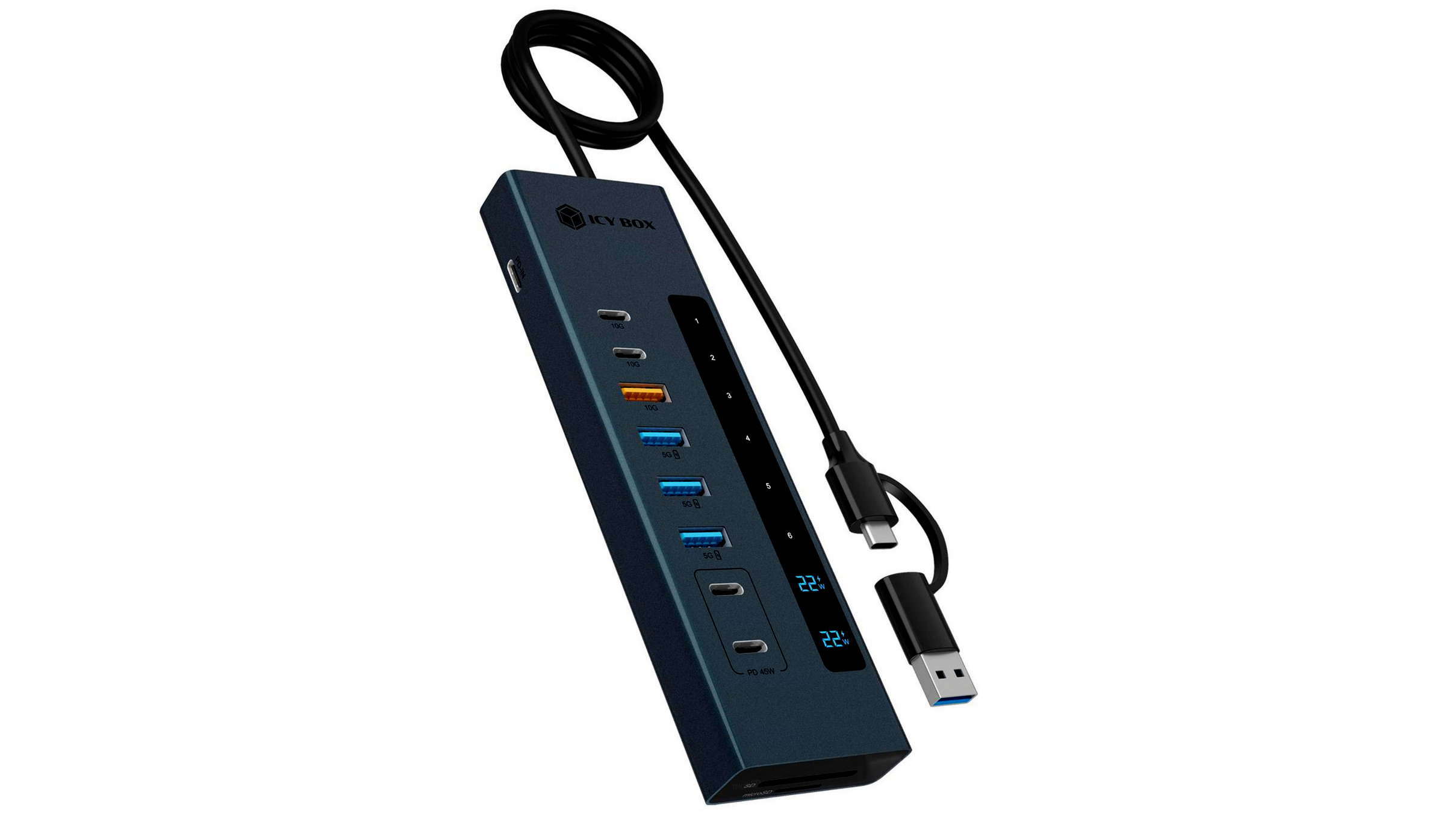 A rendkívül sokoldalúan használható ICY BOX IB-HUB1742CR-C2PD HUB 11 különböző csatlakozási lehetőséget kínál, így ideális választás mindenkinek, aki gyors és kényelmes megoldást keres eszközei összekapcsolására. Az eszköz többféle USB csatlakozást és kártyaolvasót egyesít egy elegáns, strapabíró alumínium házban, amely kiváló hőelvezetést biztosít.