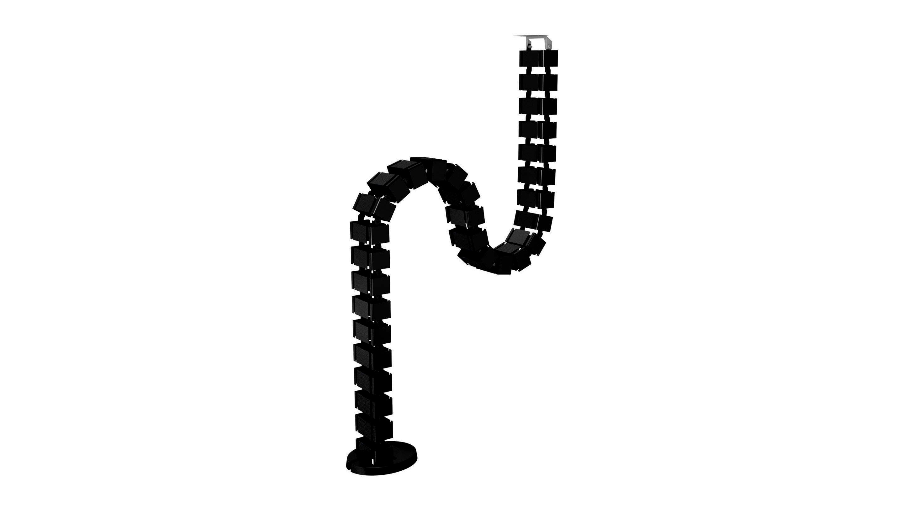 A kábelrendező 30 darab, egymásba kapcsolódó „csigolyából” áll, amelyek rugalmasan követik az asztal mozgását. Ez különösen hasznos ülő-álló (sit-stand) íróasztaloknál, ahol az asztallap magassága folyamatosan változik. A szerkezet a magasságváltozáshoz igazodva nyúlik vagy összezár, így a kábelek nem feszülnek, nem törnek meg.